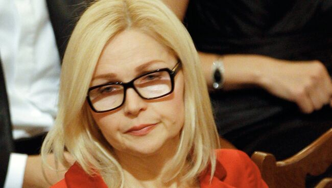На празднование дня рождения Общественной палаты супруга губернатора предпочла менее формальный образ: кожаная юбка в пол и модная блуза с лошадками.
