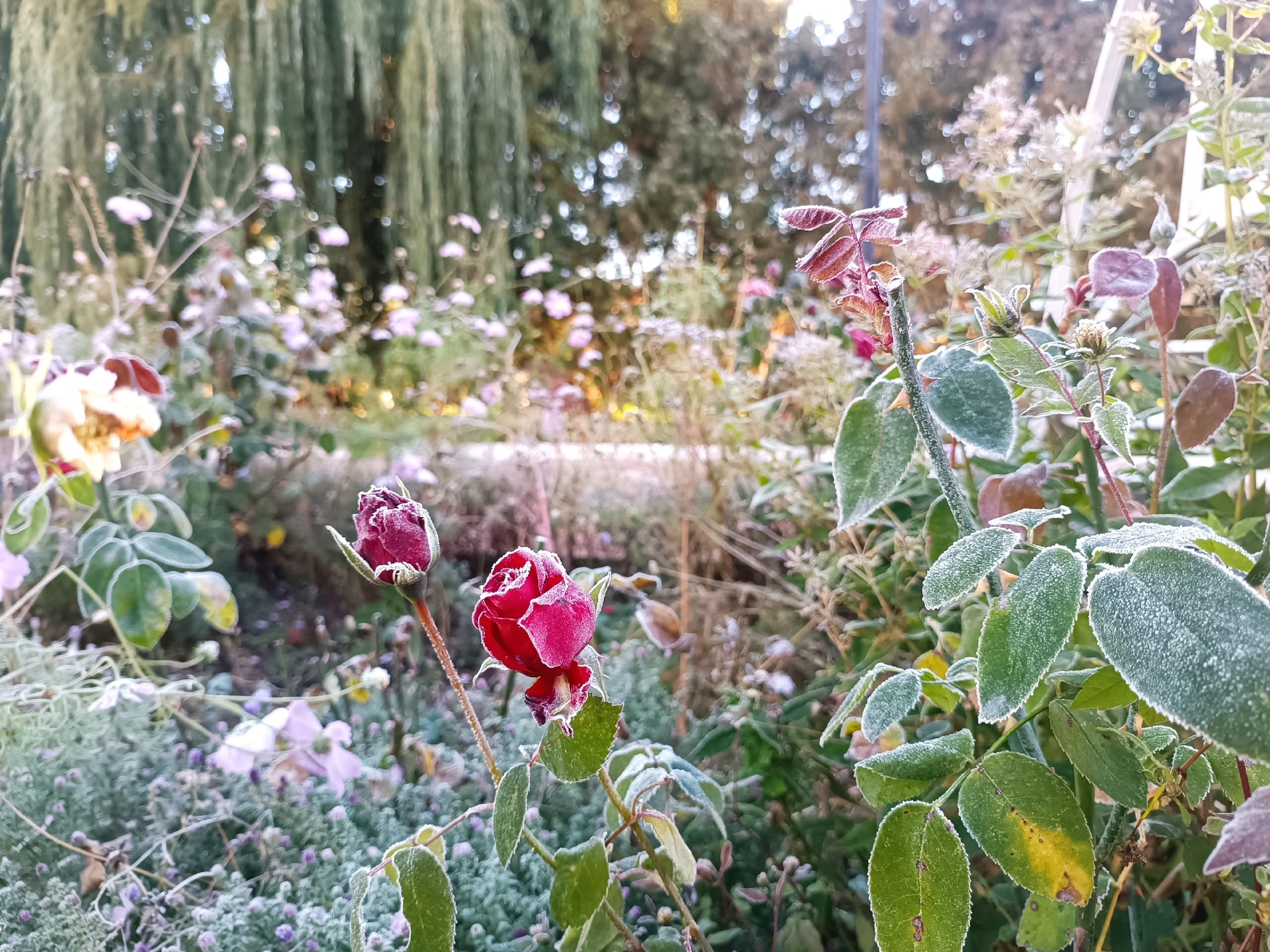 Жители Мценска запечатлели первое дыхание зимы на улочках города. Первые заморозки, иней на траве и благоухающих розах вызвали восторг орловцев.