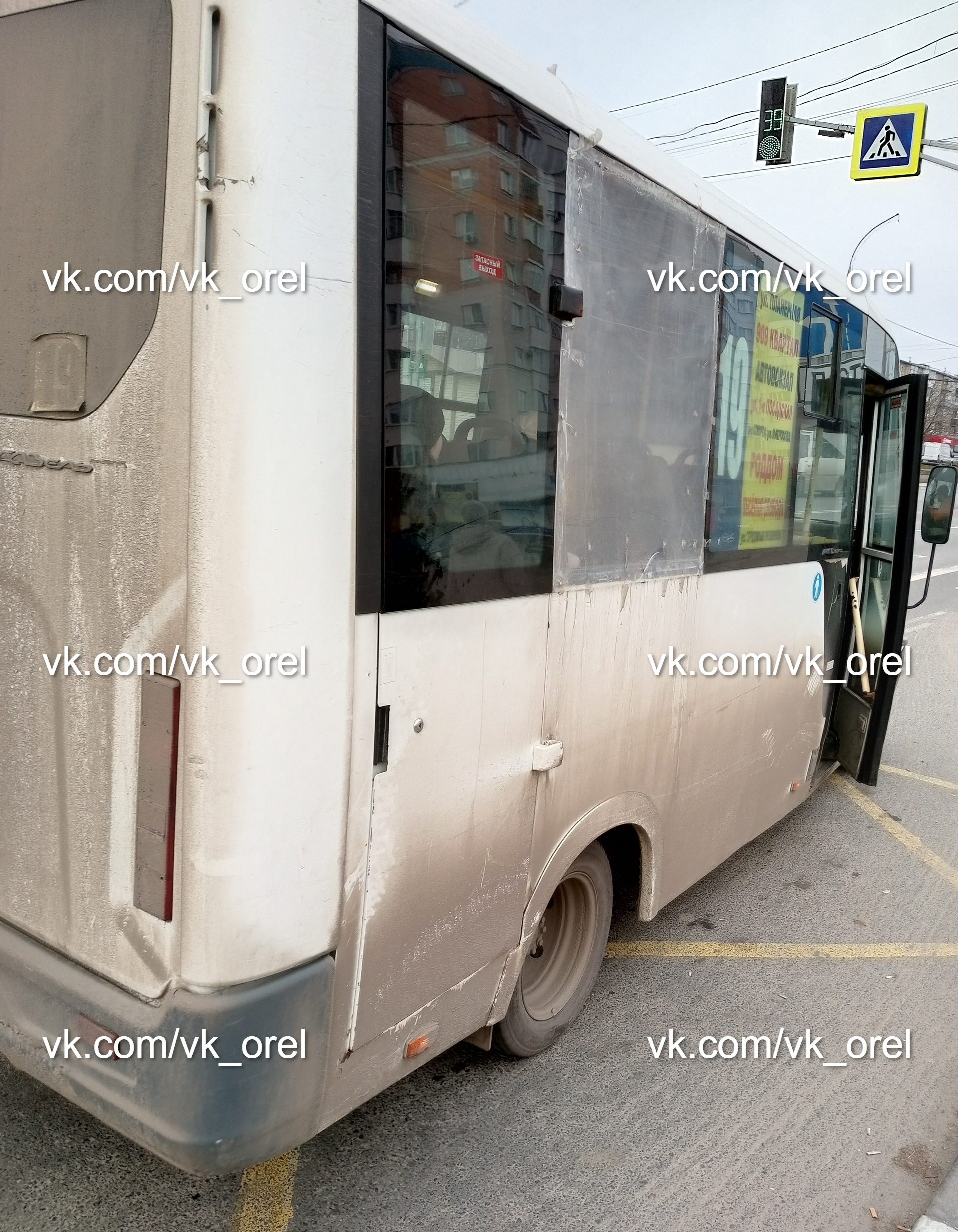 «О каком повышении цен за проезд и о каком качестве услуги пассажирской перевозки можно говорить, когда ездят ВОТ ТАКИЕ маршрутки?! Стекла нет, снаружи на шурупах привинчен лист оргстекла!!! Про ужасную грязь вообще молчу, даже номер не видно», – публикует возмущённый комментарий орловца один из популярных пабликов ВКонтакте.
