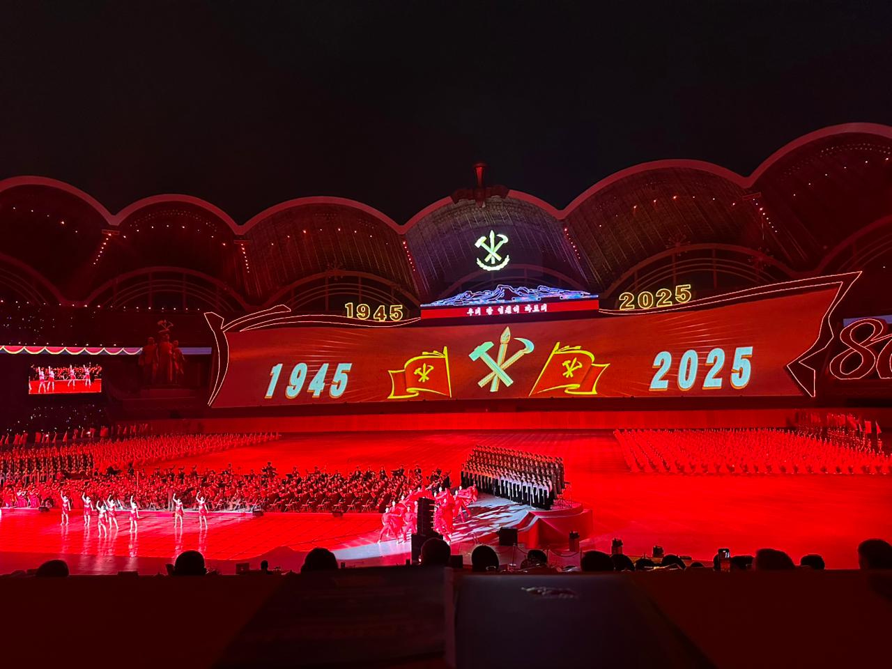 «Его сложно описать словами — представления корейских артистов известны на весь мир! Особенно впечатлил «живой экран» из тысяч разноцветных табличек и десятки тысяч других участников праздничного шоу. Выступил и Председатель Государственных дел КНДР товарищ Ким Чен Ын», — отметил Клычков.
