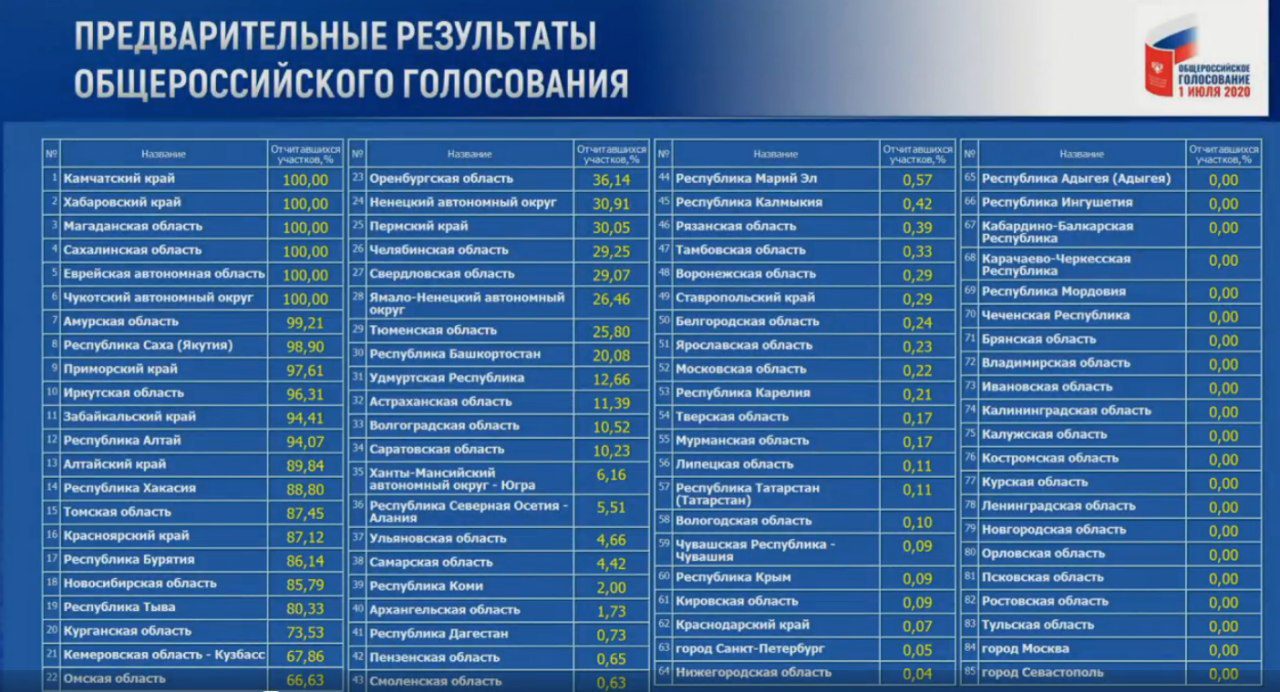 Орловская область в числе отстающих в подсчёте голосов по поправкам в Конституцию