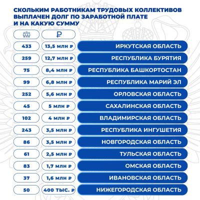 В частности, в Орловской области за первое полугодие 2024 года после воздействия надзорного органа заработная плата была выплачена 252 работникам на общую сумму в 5,6 млн рублей.