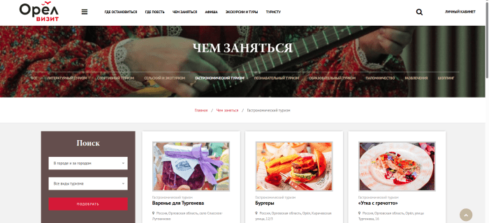 ОрелТаймс попытался найти эти туры на нескольких сайтах турагентств. Каждый раз сервисы просили очистить строку поиска, поскольку гастрономических туров в Орловскую область отчаянно не находилось.