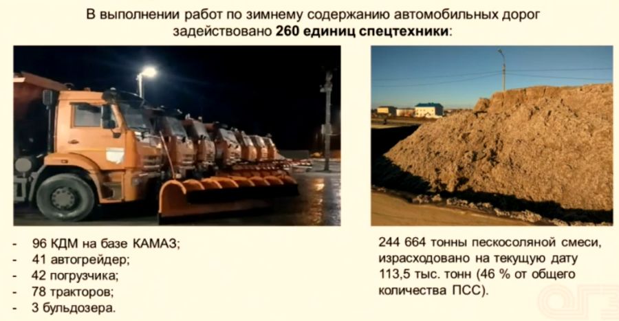 Отметим, что МБУ «Спецавтобаза» для обработки городских дорог заготовила 22,2 тыс. тонн пескосолянки, к настоящему времени израсходовано 10 тыс. тонн.