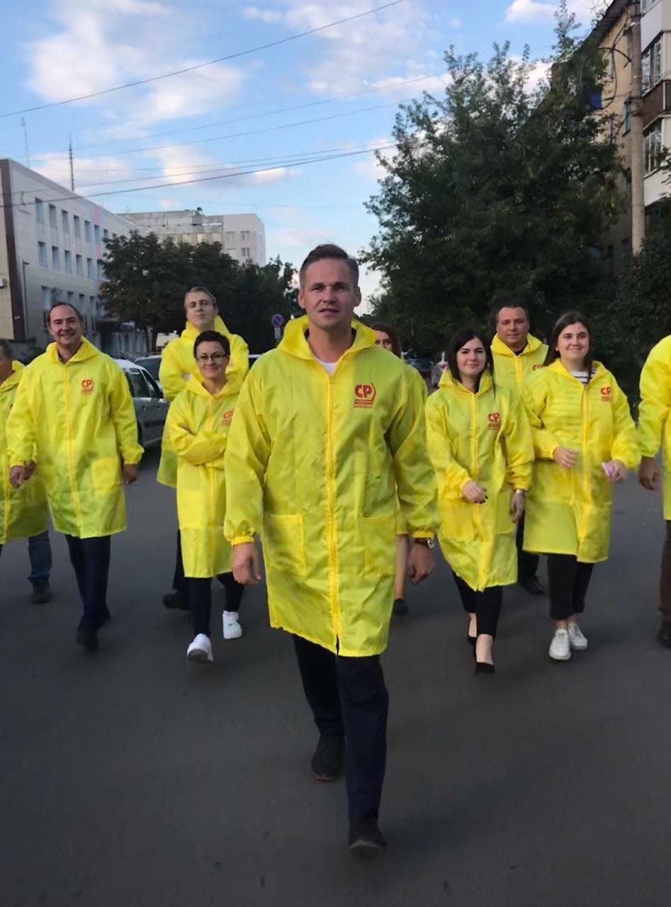Запись сопроводил фотографиями на которых он вместе с единомышленниками позирует на фоне городских пейзажей в жёлтых дождевиках.