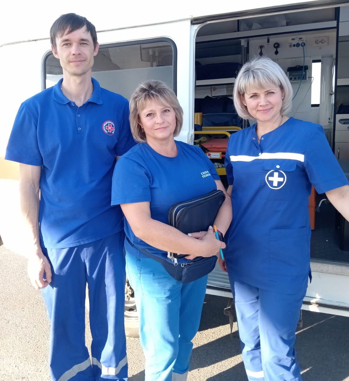 В это же время бригада скорой помощи Свердловской подстанции в составе фельдшера Натальи Гуровой, медсестры Маргариты Трушкиной и водителя Юрия Вороненкова возвращалась с вызова. Сделав остановку на АЗС, медики заметили обеспокоенных людей в припаркованной машине — это были белгородцы.
