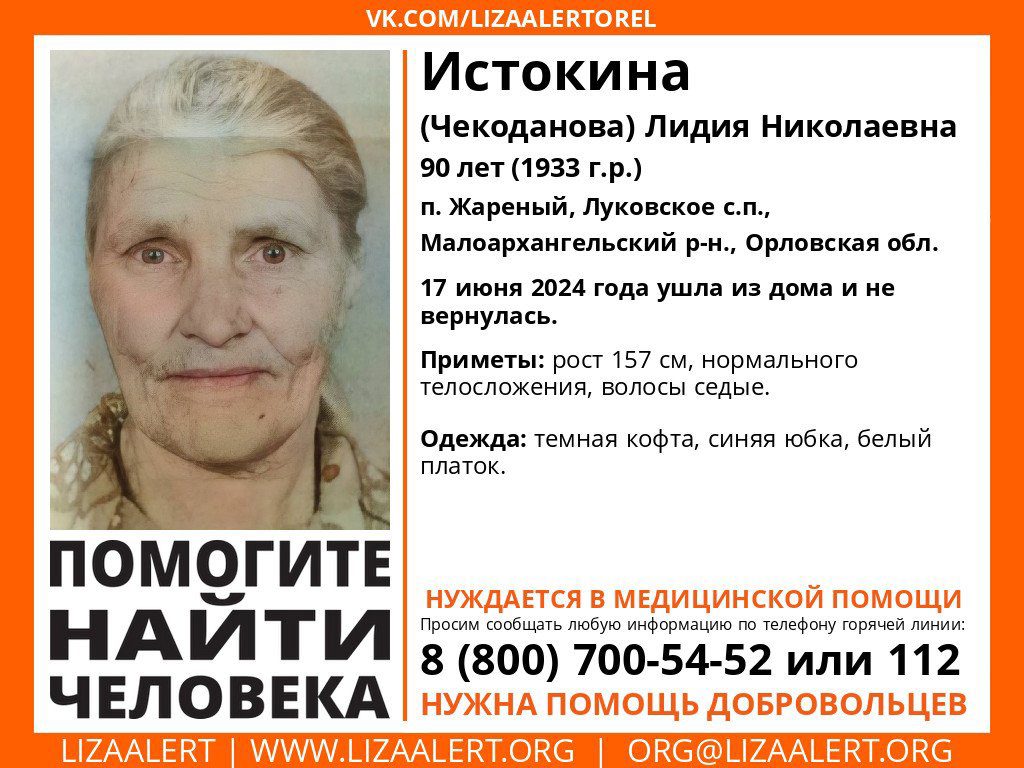 В Малоархангельском районе Орловской области успешно завершились поиски 91-летней Лидии Истокиной. Пожилая орловчанка найдена и возвращена родственникам живой и здоровой.
