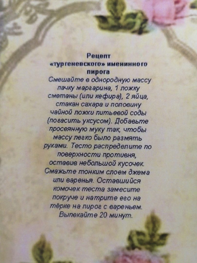 Гостям любимый пирог Тургенева пришёлся по вкусу. Приготовить его можно и дома самостоятельно. Рецептура совершенно несекретная. Сохраняйте памятку и экспериментируйте.