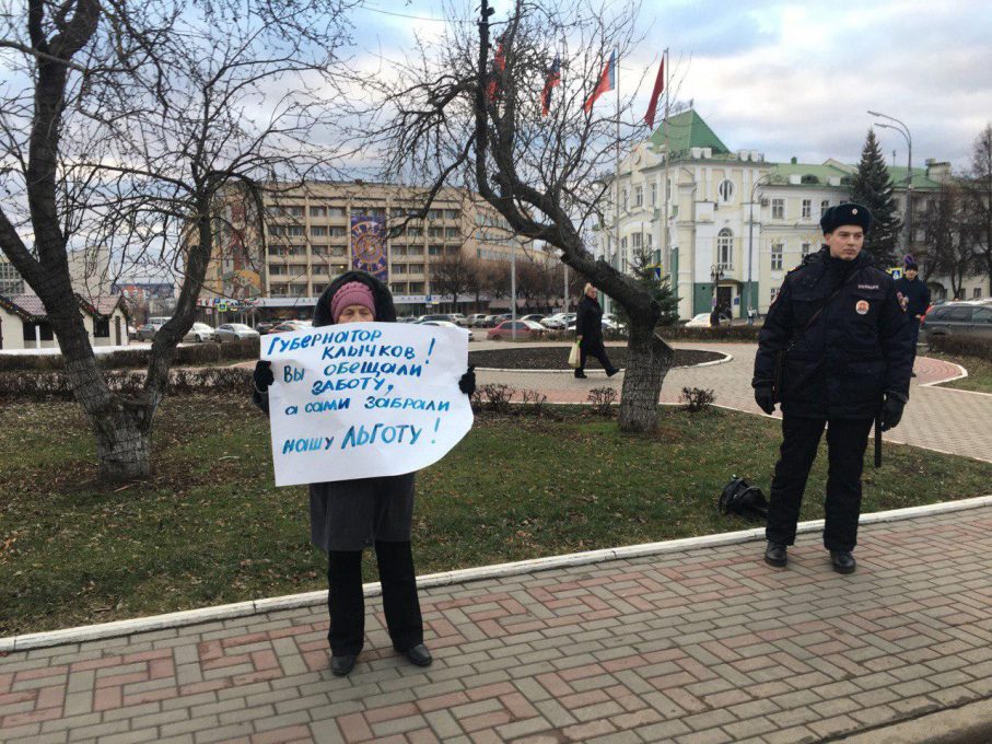 Сегодня утром к правительству Орловской области в очередной раз с плакатами вышли пенсионеры. Требования пикетирующих к губернатору всё те же: отменить лимиты поездок по единому социальному проездному билету (ЕСПБ).