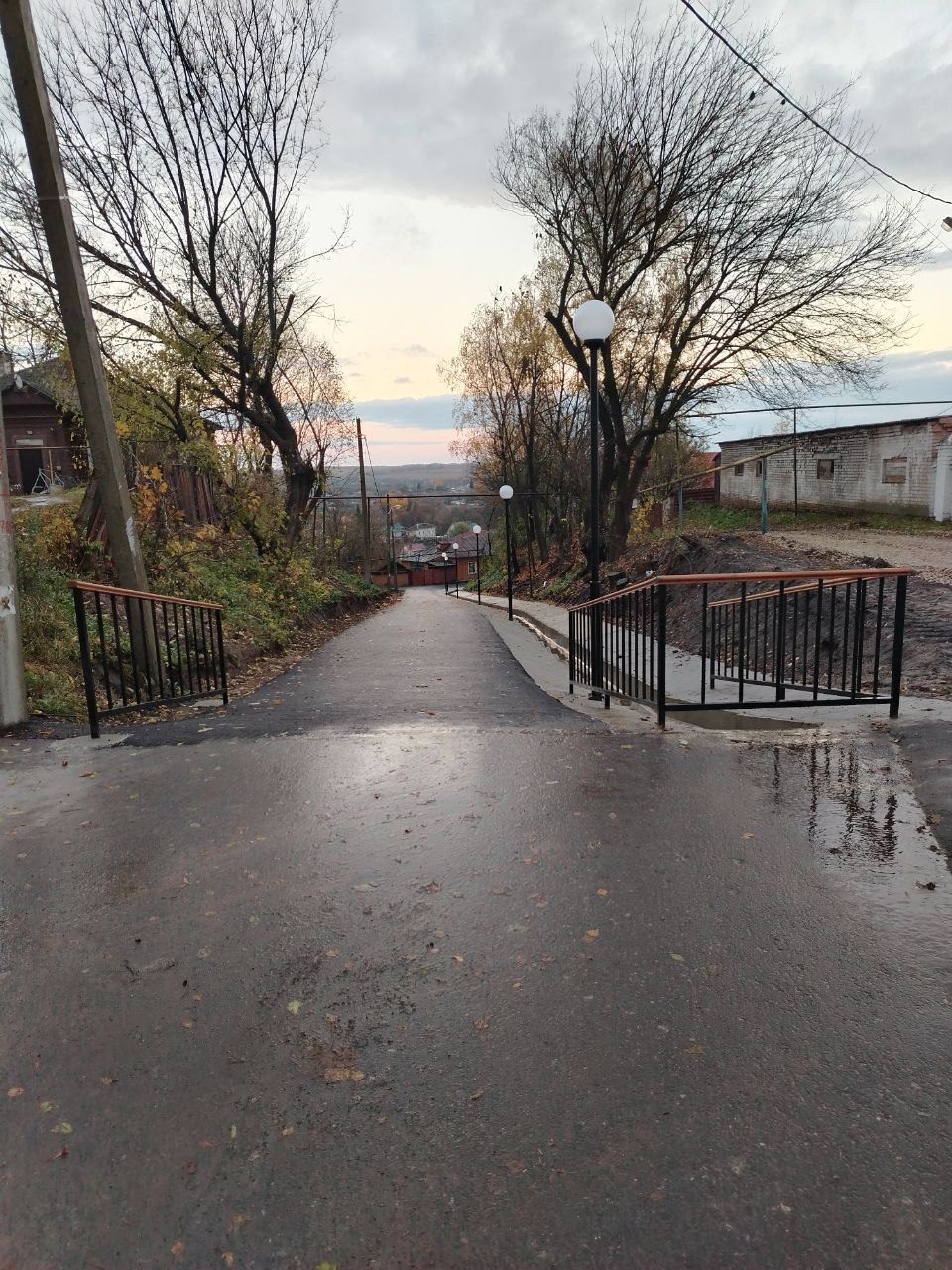 На снимках: новый спуск к обувной фабрике Болхова с ливнёвкой, устранившей угрозу оползня; дорога к домам жителей улицы Красная гора, укреплённая щебневой отсыпкой. Фото автора.