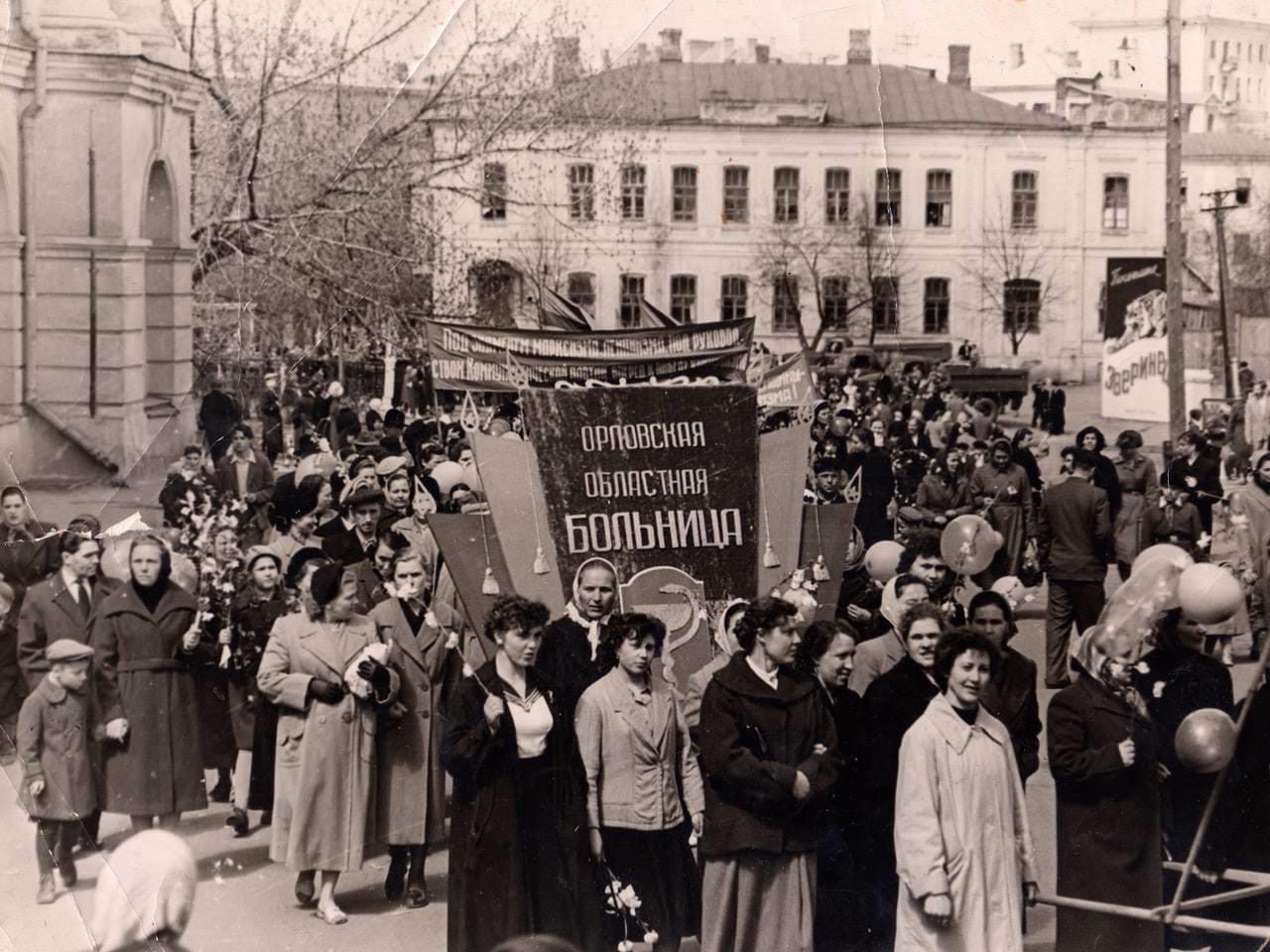 Правозащитник Дмитрий Краюхин опубликовал на своей странице в Facebook снимок Первомая в Орле 59-летней давности. Фотография датирована 1961 годом. На ней сотрудники Орловской областной больницы идут на праздничную демонстрацию.