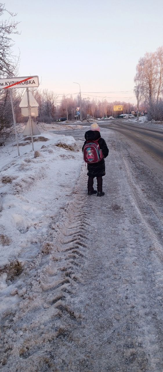 Жительница деревни разместила в соцсетях фотографию ребёнка в ожидании школьного автобуса на проезжей части.