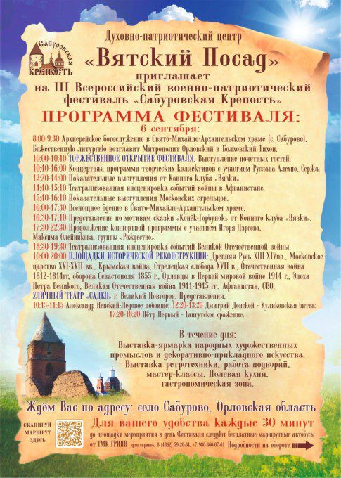 6 сентября в селе Сабурово Орловского муниципального округа пройдёт III Всероссийский военно-патриотический фестиваль «Сабуровская крепость».