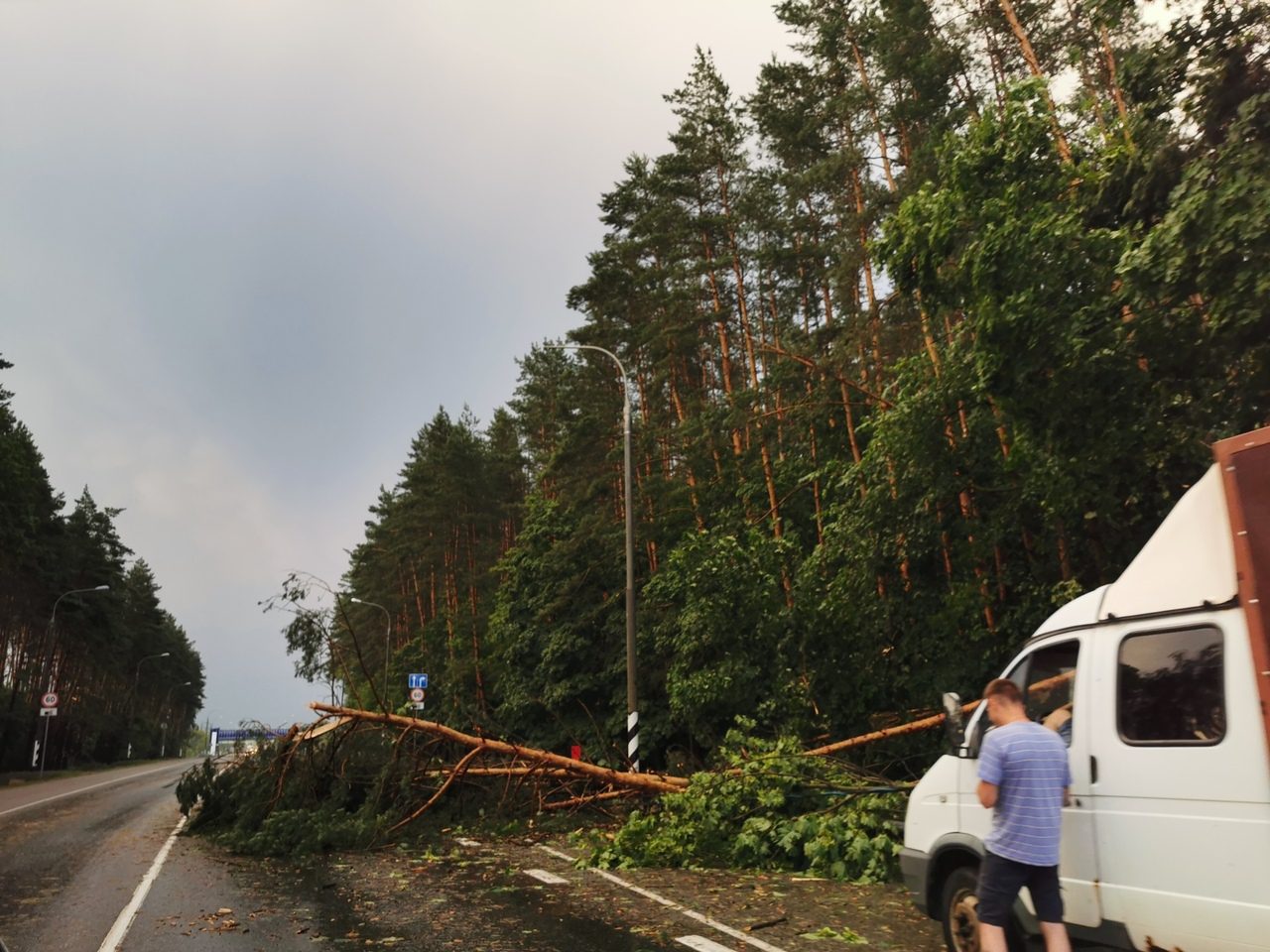 А вот в районе Лужков натиска непогоды не выдержали деревья. После урагана они оказались на проезжей части.