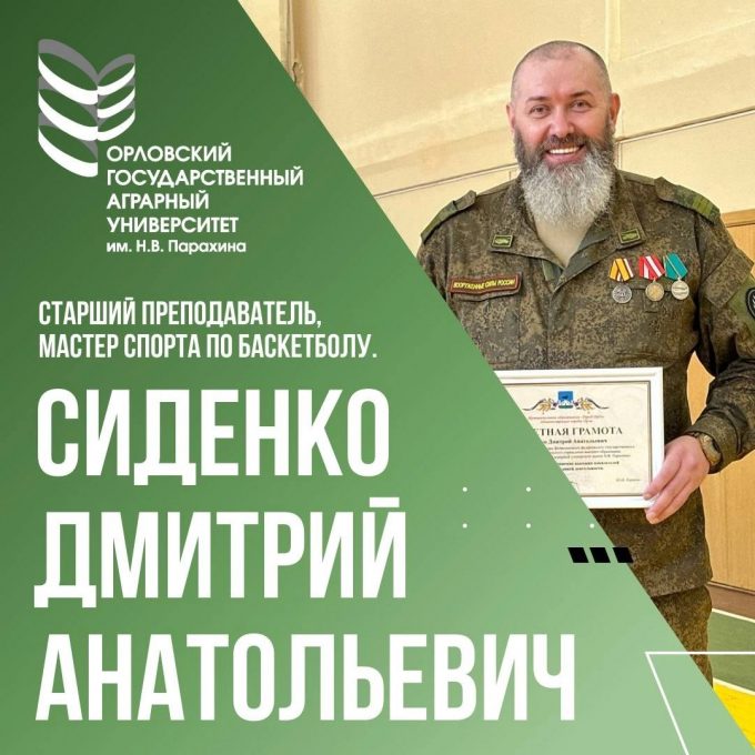 «Сиденко Дмитрий Анатольевич, старший преподаватель кафедры физвоспитания Орловского ГАУ, мастер спорта по баскетболу и тренер университетской команды», – сообщили в вузе.