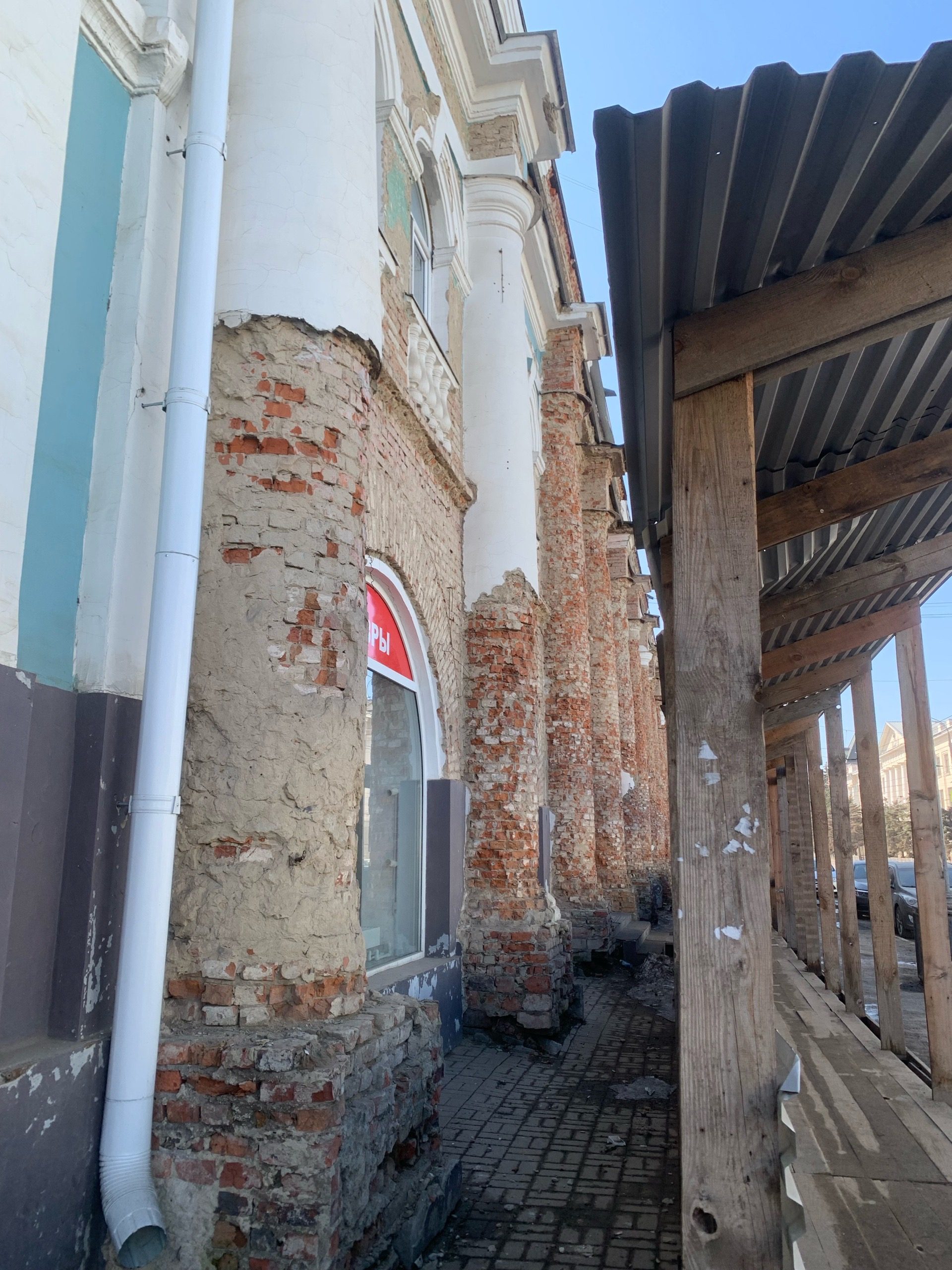 К первому масштабному капитальному ремонту дома на Гостиной,3 приступили в 2016 году в преддверии юбилея Орла. Тогда это выглядело и звучало помпезно: обещали привести в порядок одну из главных городских улиц. Получилось ли? Спустя десять лет смело можно говорить, что нет. Здание Торговых рядов и его младший брат, выполненный в том же стиле дом на Гостиной,3 продолжают разрушаться.