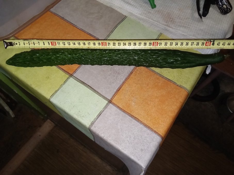 Галина Алексеева также похвалилась своим дачным рекордом. Орловчанке удалось вырастить пусть и не тяжёлый, но зато очень длинный огурец – в 45 см.
