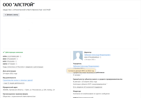 Интересна здесь и информация о самой ООО «Алстрой». Из открытых источников удалось узнать, что компания была открыта в 2021 году, её уставной капитал составляет уже привычные 10 тысяч рублей, а вот численность работников, согласно данным ФНС за 2022 год, равна 0. Что, к слову, не мешает ей вести успешную работу – за 2021 год чистая прибыль компании составила 61 тысячу рублей.