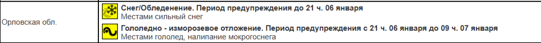 Гидрометцентр России опубликовал предупреждение о снегопаде в Орловской области. Он ожидается местами. Предупреждение об обильных осадках действует до 21 часа 6 января.