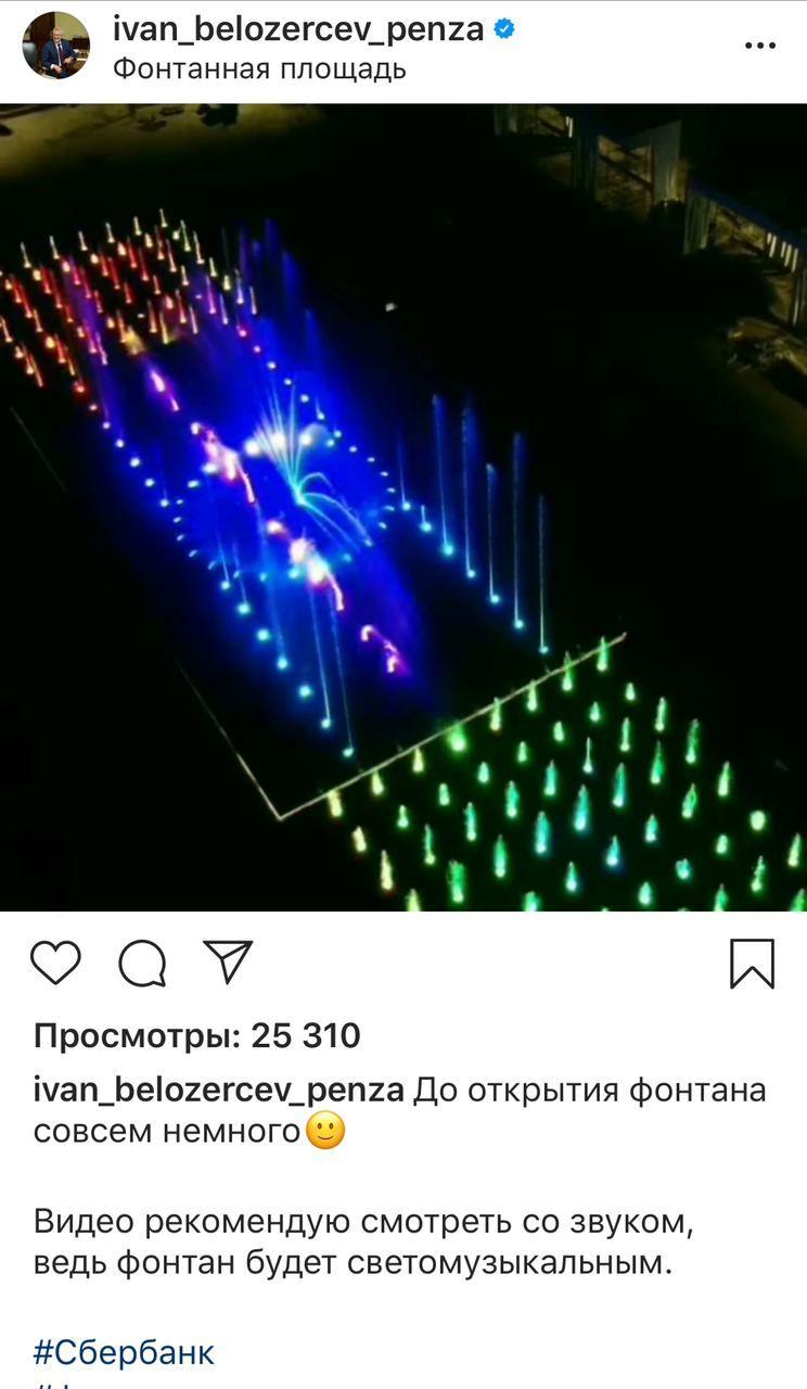 «Увидел такую красоту у губернатора Пензенской области и расстроился. Помню, как Андрей Клычков похвалился губернатору Пензенской области о том, что нашему региону удалось войти в программу Сбербанка, и они готовы профинансировать фонтан. Иван Белозерцев подхватил тему и поехал в Сбербанк. И вот такая красота уже появилась у них, а не у нас. Я очень рад за жителей Пензенской области, и расстроен что у нас такой красоты нет…а могла быть», – написал в своём телеграм-канале Лежнев.