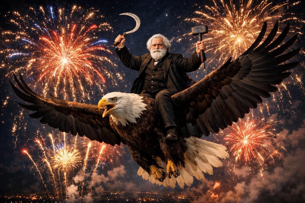 Центральный образ – орёл в полёте с широко расправленными крыльями. Птица изображена в движении вверх и вперёд, что символизирует прогресс, свободу и энергию развития.