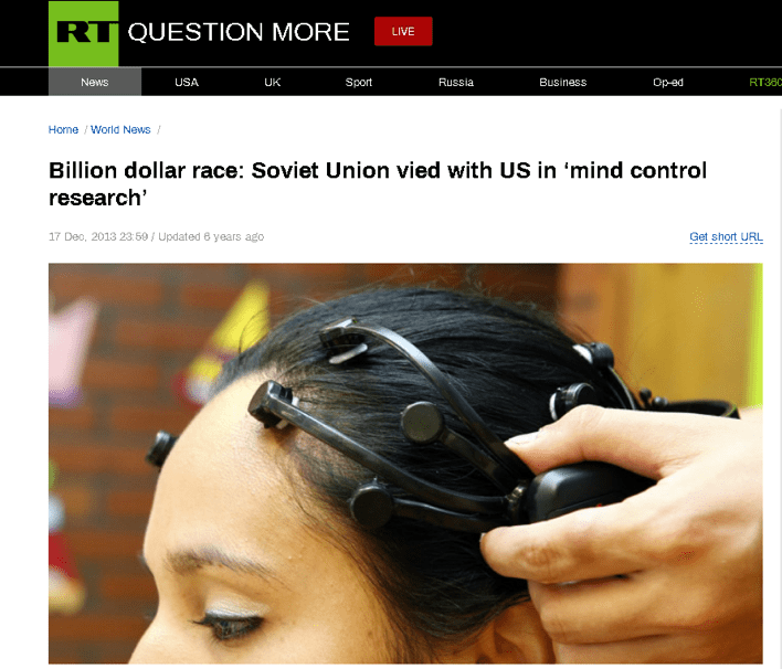 Титульная страница Russia Today с материалом по публикации о нетрадиционных исследованиях в СССР (Serge Kernbach,Unconventional research in USSR and Russia: short overview).