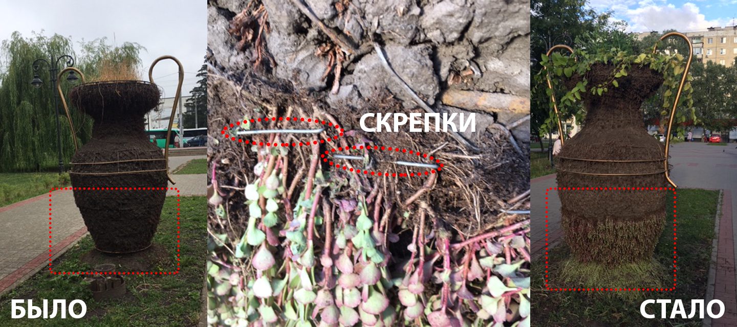 Отдельного внимания заслуживает топиарная фигура в виде земляной вазы, которая находится в сквере. Ещё позавчера из неё торчал редкий кустик уже давно высохшей травы. ОрелТаймс писал об этом 26 июня. Но кто б нас слышал!