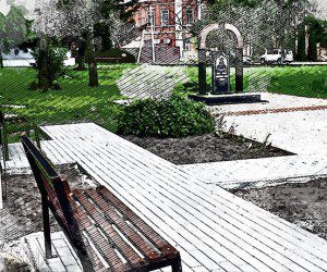 Здесь будут установлены 5 светильников, 3 лавочки, 3 урны. Территорию озеленят, сделают тротуар из плитки, а также асфальтированную парковку.