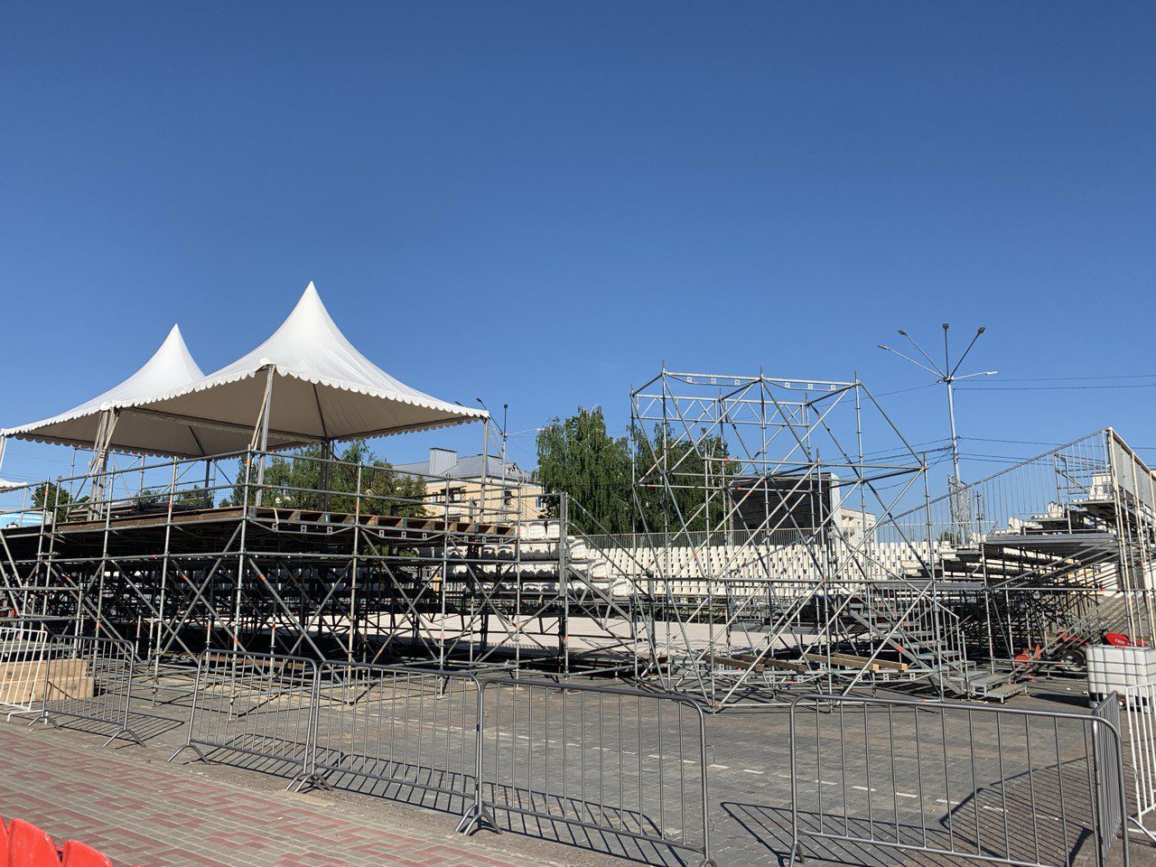 Орёл активно готовится к чемпионату России по волейболу. На площади Ленина возвели конструкцию с трибунами.
