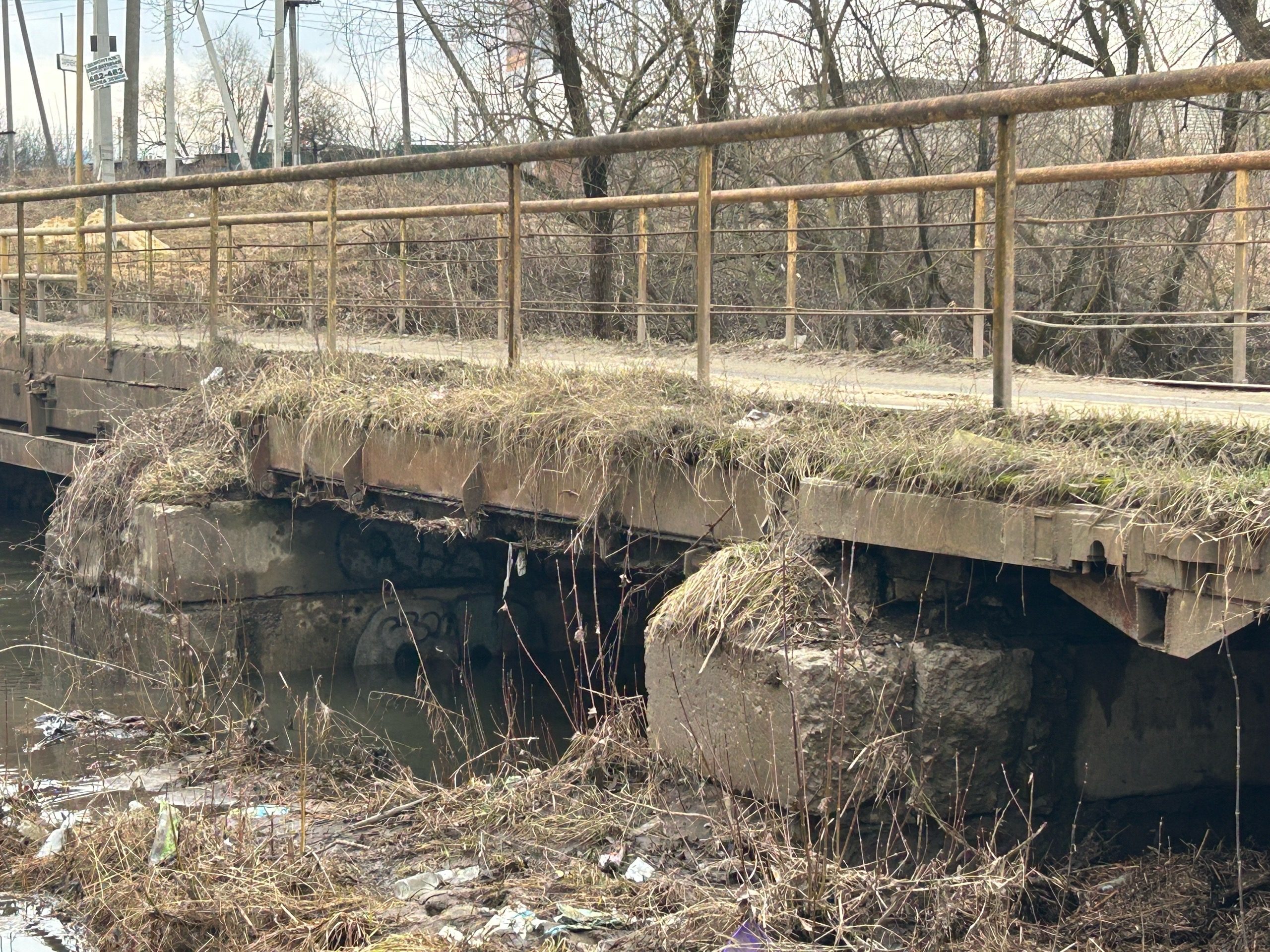 Жители добавили, что мост в целом представляет опасность: из него торчат металлические конструкции, а бетонные опоры регулярно подмывает река.