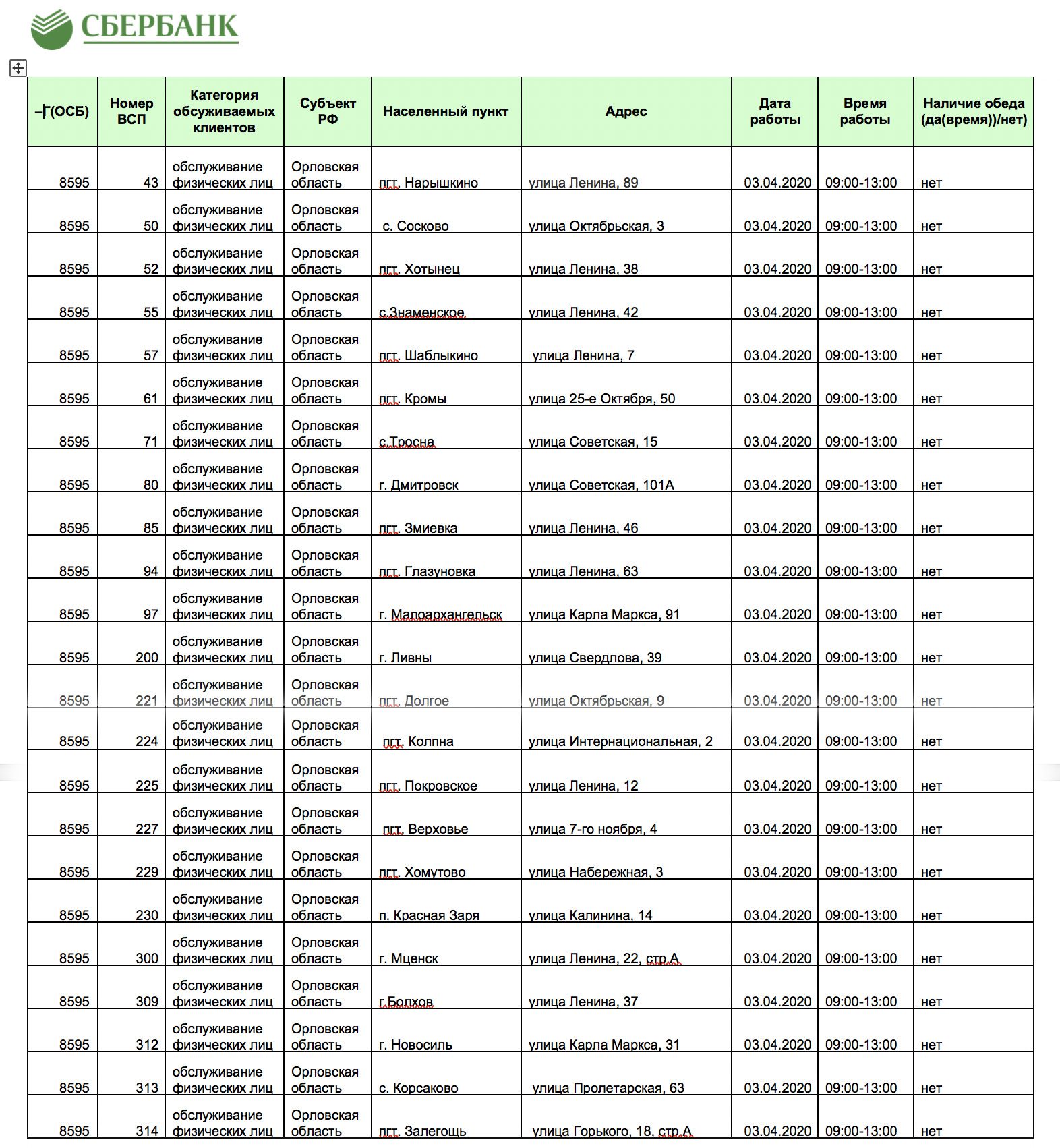 В связи с увеличением клиентопотока, чтобы избежать скопления граждан в офисах банка (что небезопасно в сложившейся ситуации), Сбербанк открывает дополнительные филиалы в Орле и во всех районах области.