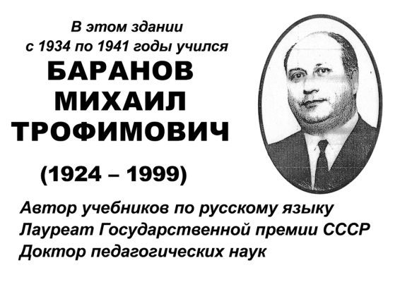 В Мценске может появится мемориальная доска, посвящённая автору учебников по русскому языку, лауреату Государственной премии СССР, доктору педагогических наук Баранову Михаилу Трофимовичу. Памятную табличку планируют разместить на фасаде здания Мценского краеведческого музея им. Г.Ф. Соловьева, где до Великой Отечественной войны располагалась школа, в которой учился будущий знаток родного языка.