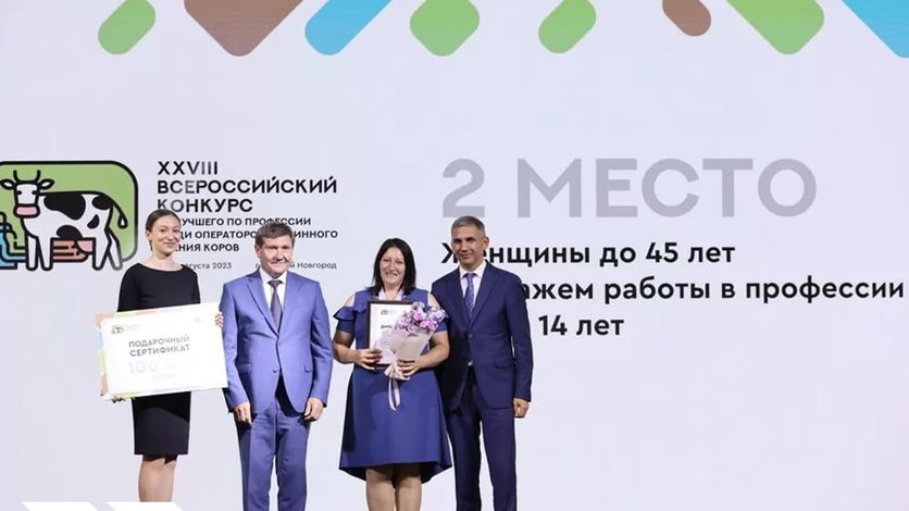 Оператор машинного доения коров орловского предприятия «Славянское» Екатерина Захарова заняла второе место во Всероссийском конкурсе профмастерства, который проходил в Нижнем Новгороде. Награду орловчанке вручил экс-зампред правительства Орловской области по АПК Дмитрий Бутусов, который сейчас работает в Минсельхозе.