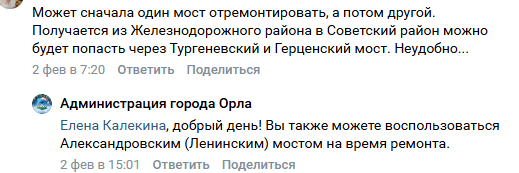 В ответ на это с аккаунта пресс-службы мэрии отметили: «Вы можете воспользоваться Александровским (Ленинским) мостом на время ремонта».