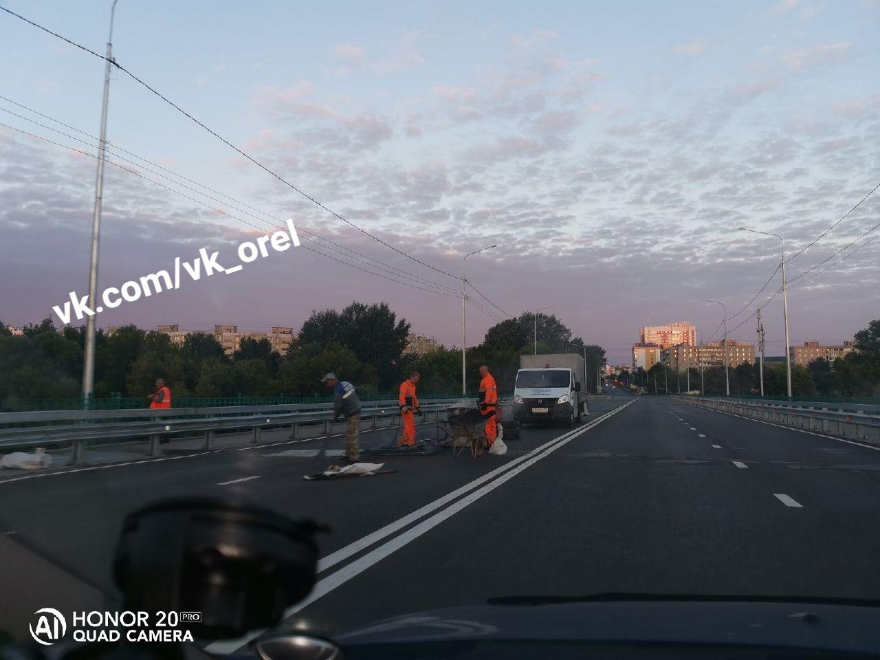 В Орле на мосту Дружбы начали латать ямы по гарантии