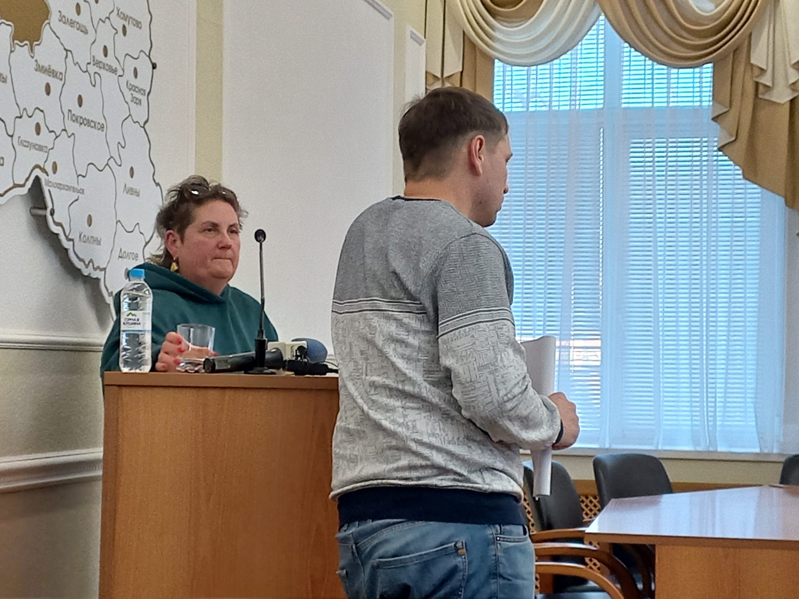 На фото: за трибуной прораб Наталья Басарева слушает Руслана Орлова