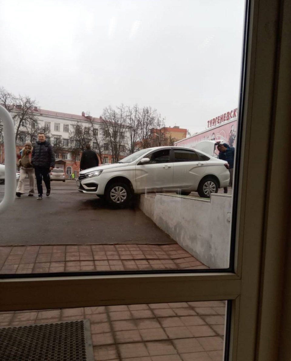 В городе Орле обнаружился автомобилист, любящий необычные способы парковки. Мужчина припарковал свою машину на бетонный поребрик рядом со входом в один из городских ТЦ.