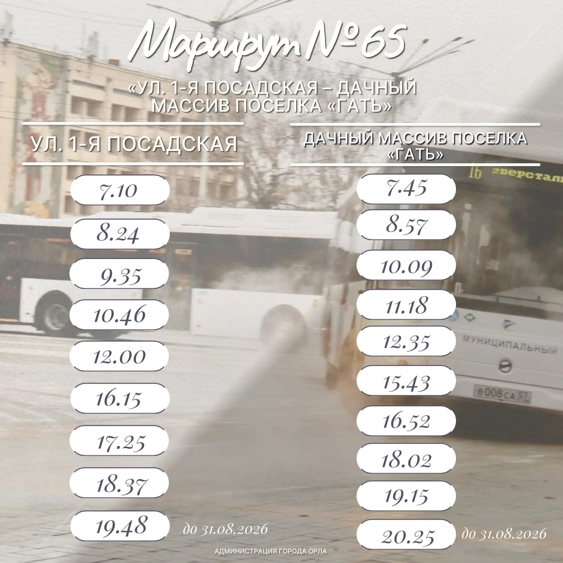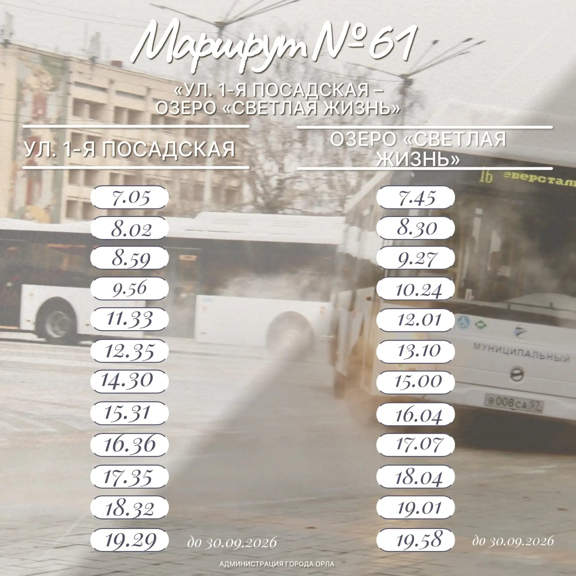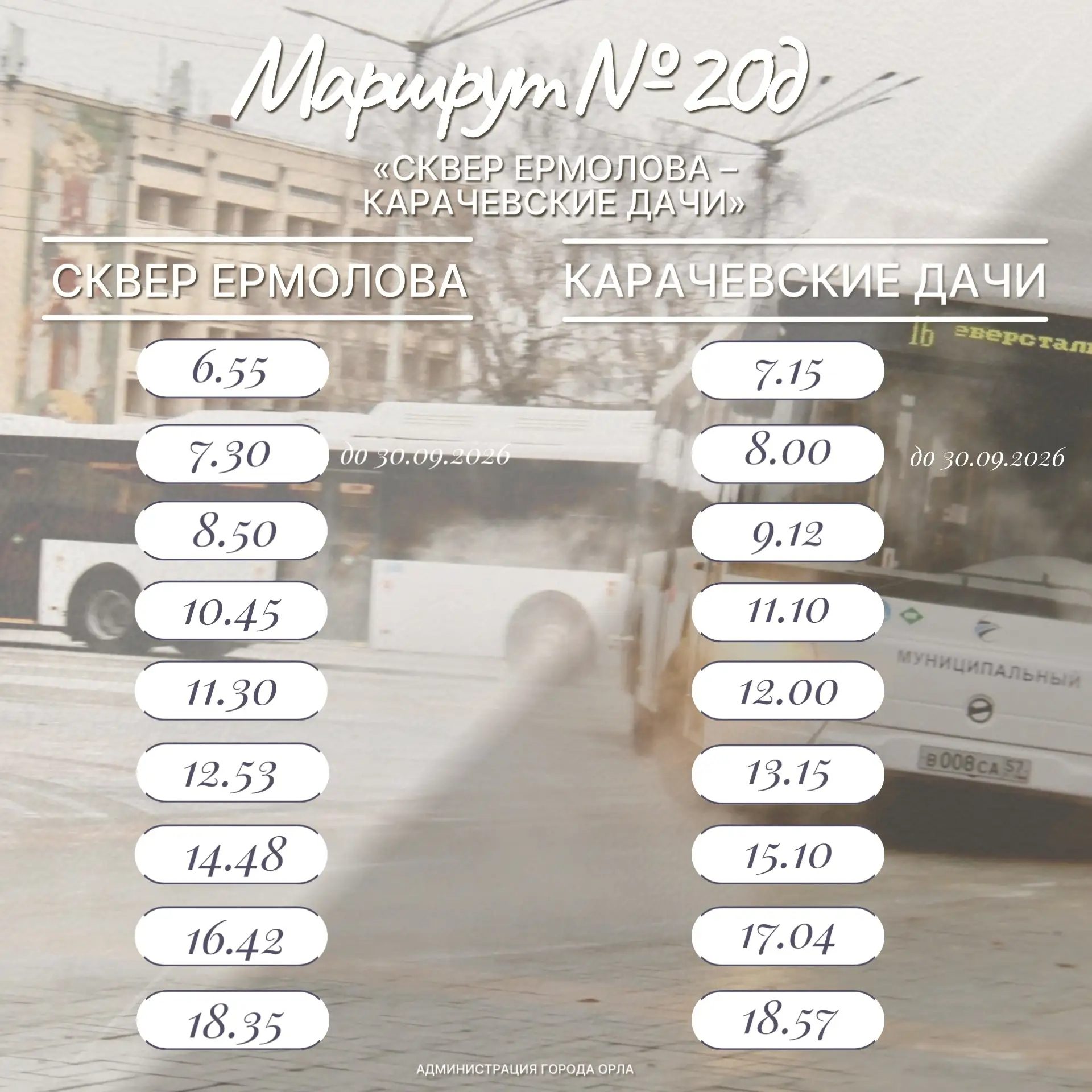 В Орле опубликовали расписание дачных автобусов на 2026 год