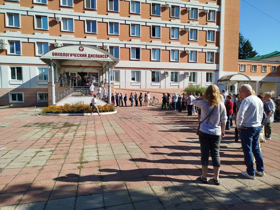 В Орле пациенты выстроились в гигантскую очередь в онкодиспансер