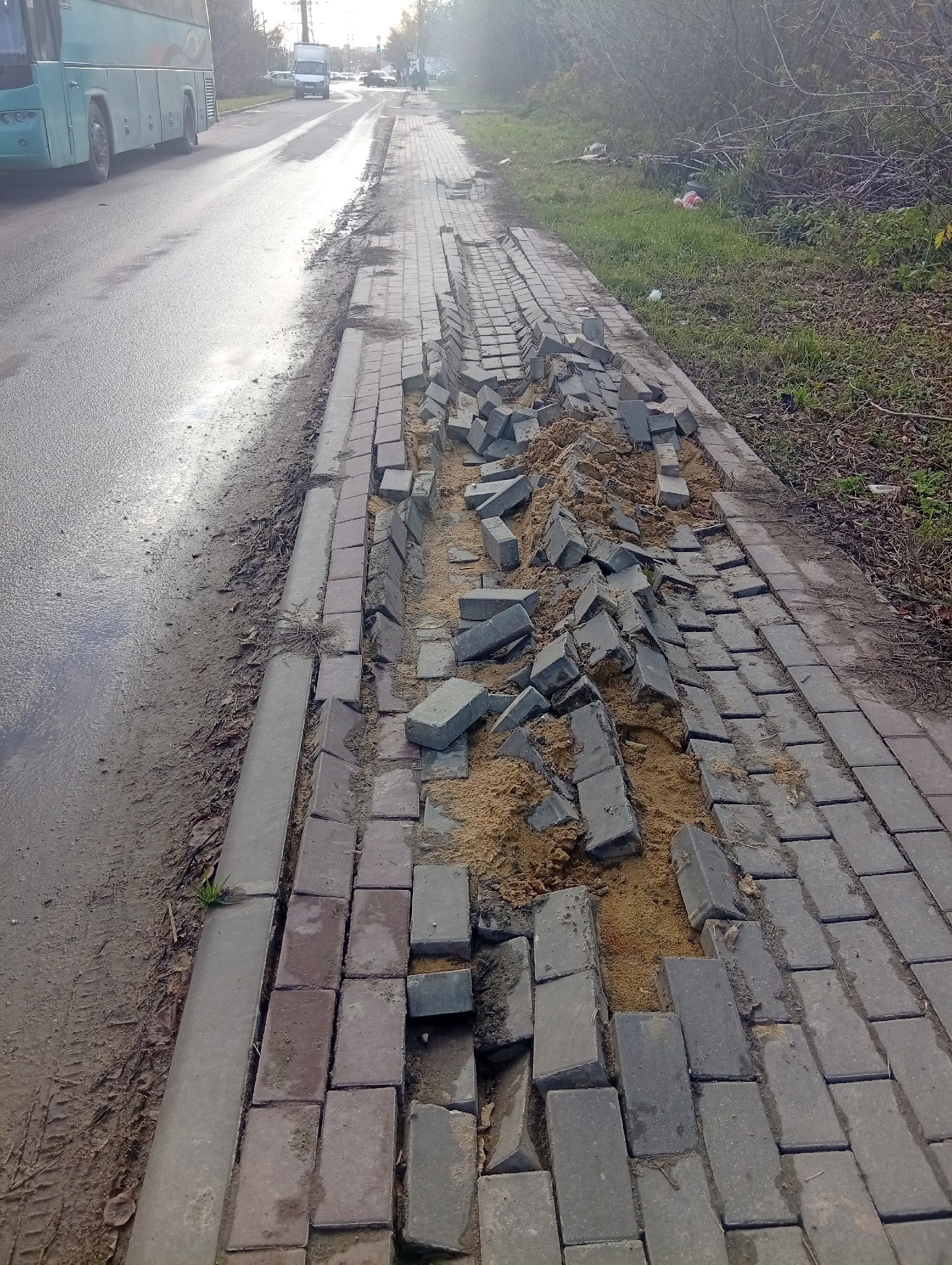 «На Наугорке идёт стройка полным ходом: КамАЗы едут прямо по тротуару. Естественно, всё разворотили. А кто теперь это будет исправлять? Пройти невозможно. Плитка «пошла баяном»», — обратились к власти орловцы.
