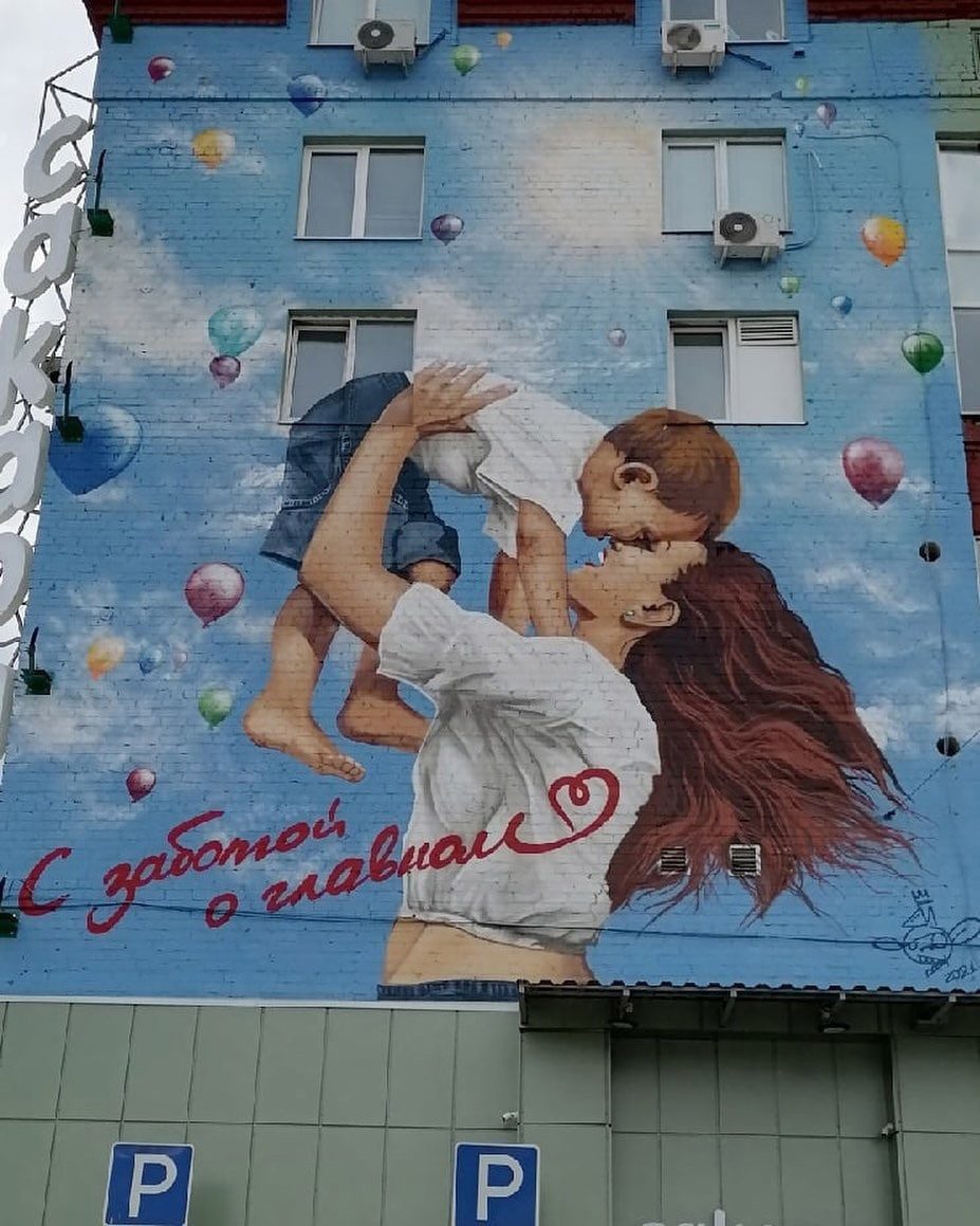 В Орле на Наугорском шоссе, неподалёку от медцентра «Сакара», появилось ещё одно красивое граффити. На нём изображена мама с ребёнком на руках.