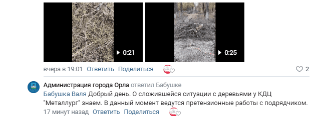 В мэрии в очередной раз указали жителям на требования СанПиН по необходимости спила больных и аварийных растений, а также напомнили о компенсационной высадке. А потом случилось совершенно неожиданное: орловчанка указала власти на гибель берёз, высаженных на площадке возле КДЦ «Металлург» в рамках благоустройства территории.