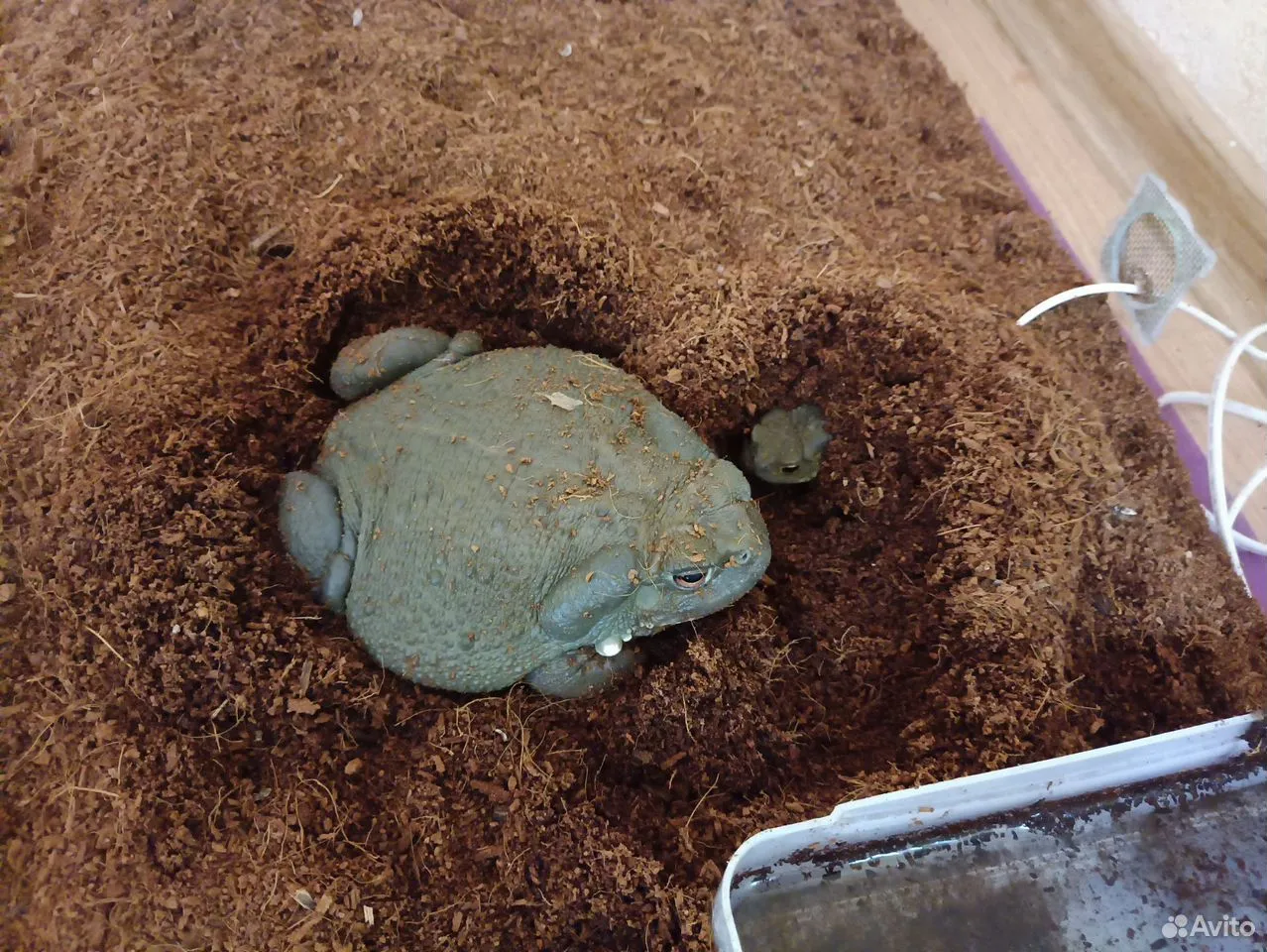 Так, к примеру, житель Северного района Орла предлагает купить у него колорадскую жабу. Это один из самых больших видов жаб в мире. Её вес достигает 1 кг, а длина тела – около 20 см. Той, что на фото – около 2,5 года. Пол хозяин не знает, но оценивает любимого питомца весьма дорого – в 70 тыс. рублей. Вместе с жабой новый хозяин получит террариум с обогревом.