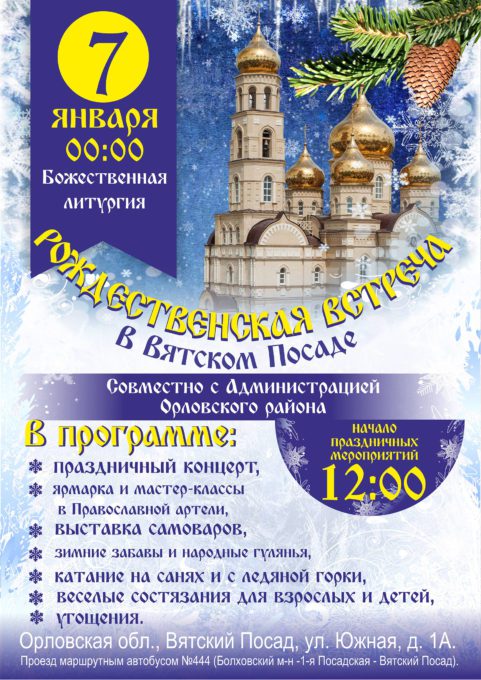 Издавна на Руси существовала традиция проводить рождественские праздники, устраивая игры и массовые гулянья. Народные традиции поддерживают и сегодня – в Вятском Посаде 7 января состоится праздник «Рождественская встреча».