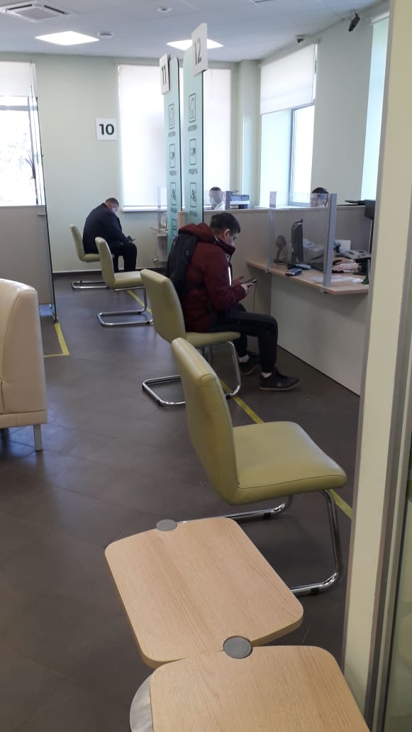 - нанесены линии разметки, которые позволяют клиентам держаться на расстоянии 1,5 метров как от операционистов, так и друг от друга.