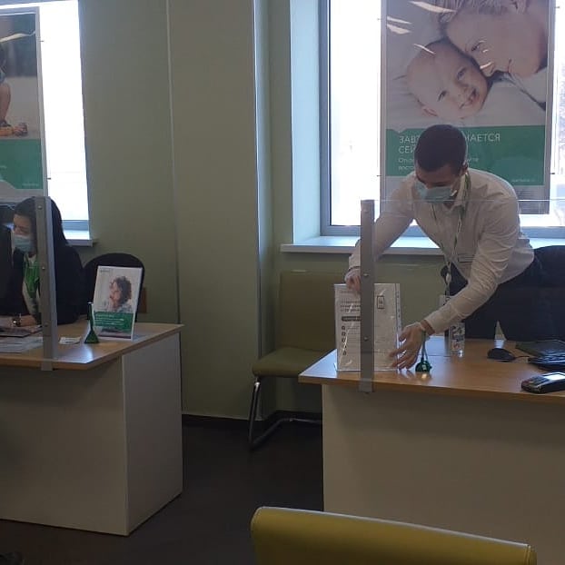 - установлены дополнительные стеклянные перегородки между сотрудником и клиентом,