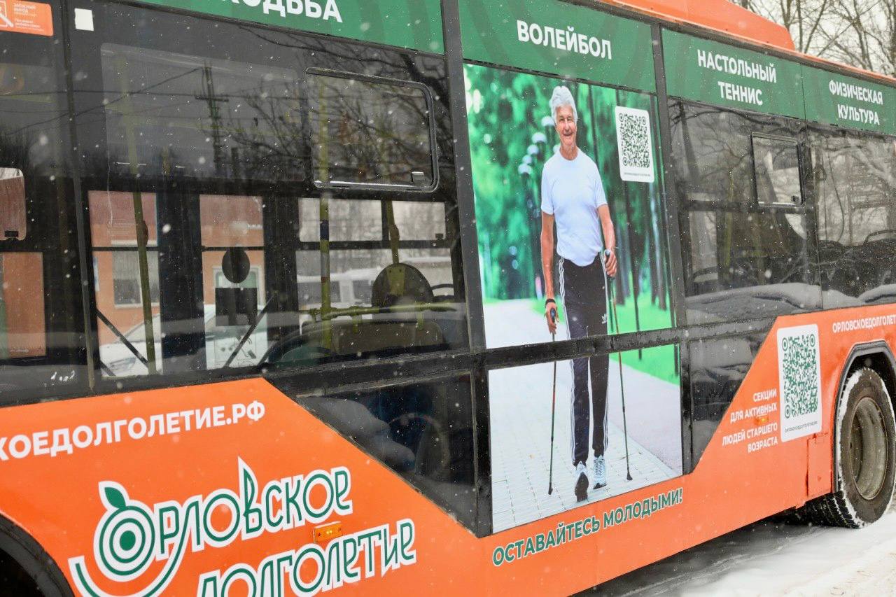 Общественный транспорт оформлен в стилистике Всероссийского физкультурно-спортивного комплекса «ГТО» и проекта «Орловское долголетие». Идея состоит в том, чтобы напомнить горожанам о важности занятия спортом.