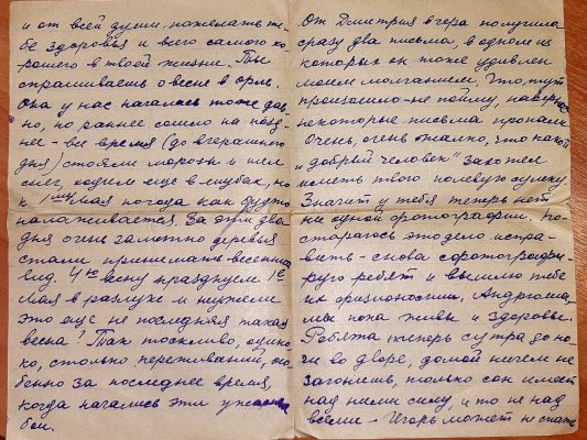 «Все письма были отправлены с одного и на один и тот же адрес: г. Орел, ул. 1-ая Посадская, д. 11. Адресаты разные: Дутова Валентина Сергеевна, Дутов Андрей Гаврилович, Родионов С.Г. (для Вали), Родионова Валентина Сергеевна. Прочитав несколько писем, стало понятно, что Валентина сменила фамилию на Родионова.