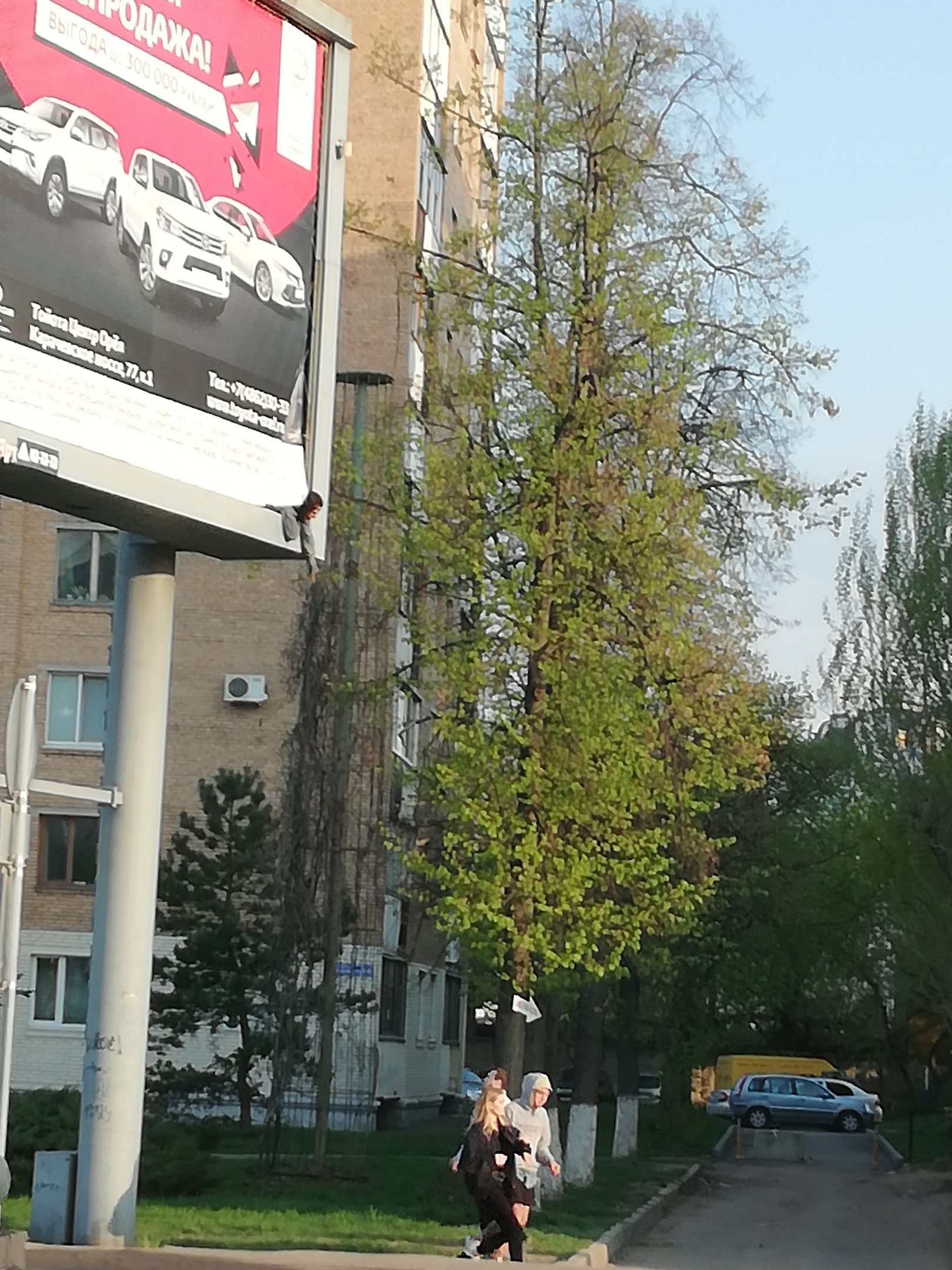 Пасхальным утром 28 апреля, сотрудники МЧС выехали на необычный вызов. В 06:43 на пульт спасателей позвонили прохожие и сообщили, что на рекламном щите у Красного моста сидит девушка.