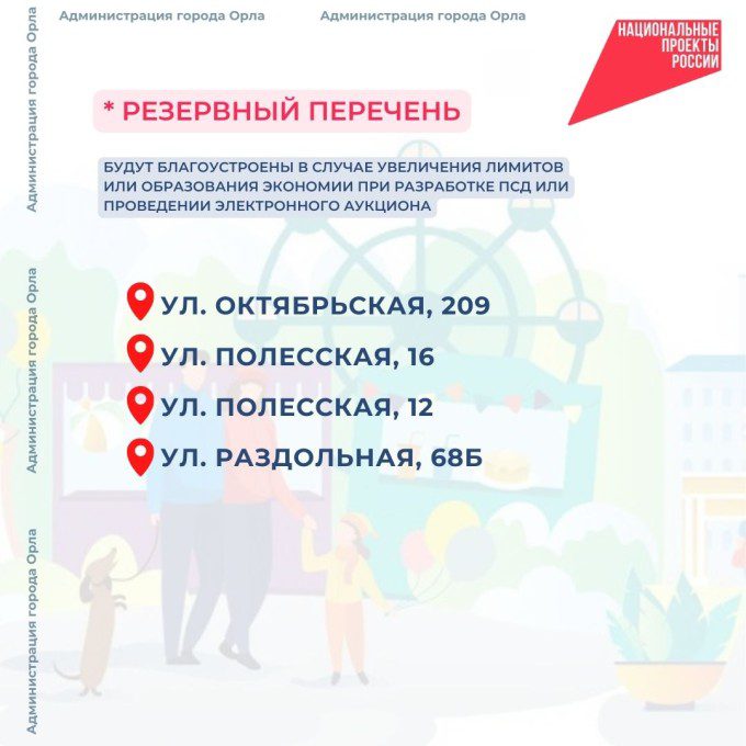 На заседании общественной комиссии орловские чиновники утвердили основной и резервный перечни дворовых территорий, попадающих под ремонт в будущем году. В городе продолжается реализация нацпроекта «Инфраструктура для жизни».